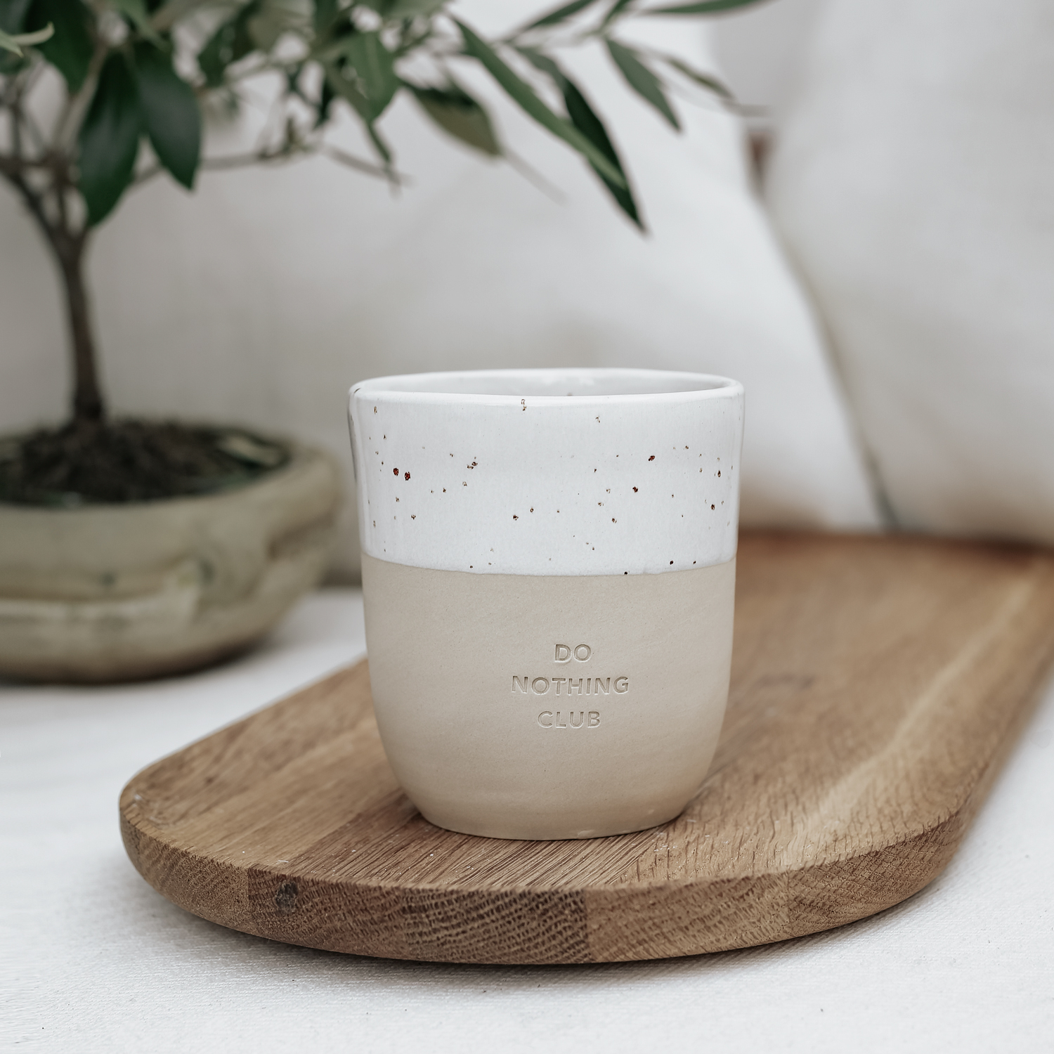 Malá keramička z Portugalska vyrábí tyto nádherné hrnečky s láskyplnou péčí, a proto jsou skvělým každodenním společníkem pro všechny, kteří milují krásu minimalistického designu. Díky těmto hrnečkům bijí srdce rychleji všem, kteří milují individualitu Clay & Glaze, protože každý kousek má svůj vlastní nádech a osobitý šarm. Jelikož jsou všechny hrnečky vyráběny ručně, vypalovány, raženy, broušeny, glazovány a znovu vypalovány, existují rozdíly v hloubce tisku, ve výšce i rovnosti. Minimalistický design a přirozené barevné odstíny završuje krásná slepá ražba „DO NOTHING CLUB“. Jsme do nich zamilovaní, plní čisté radosti a nemůžeme se dočkat, až je uvidíme ve vašich rukách! Kameninový hrneček Do Nothing Club je dokonalým dárkem pro všechny, kteří se radují z každého nového dne.