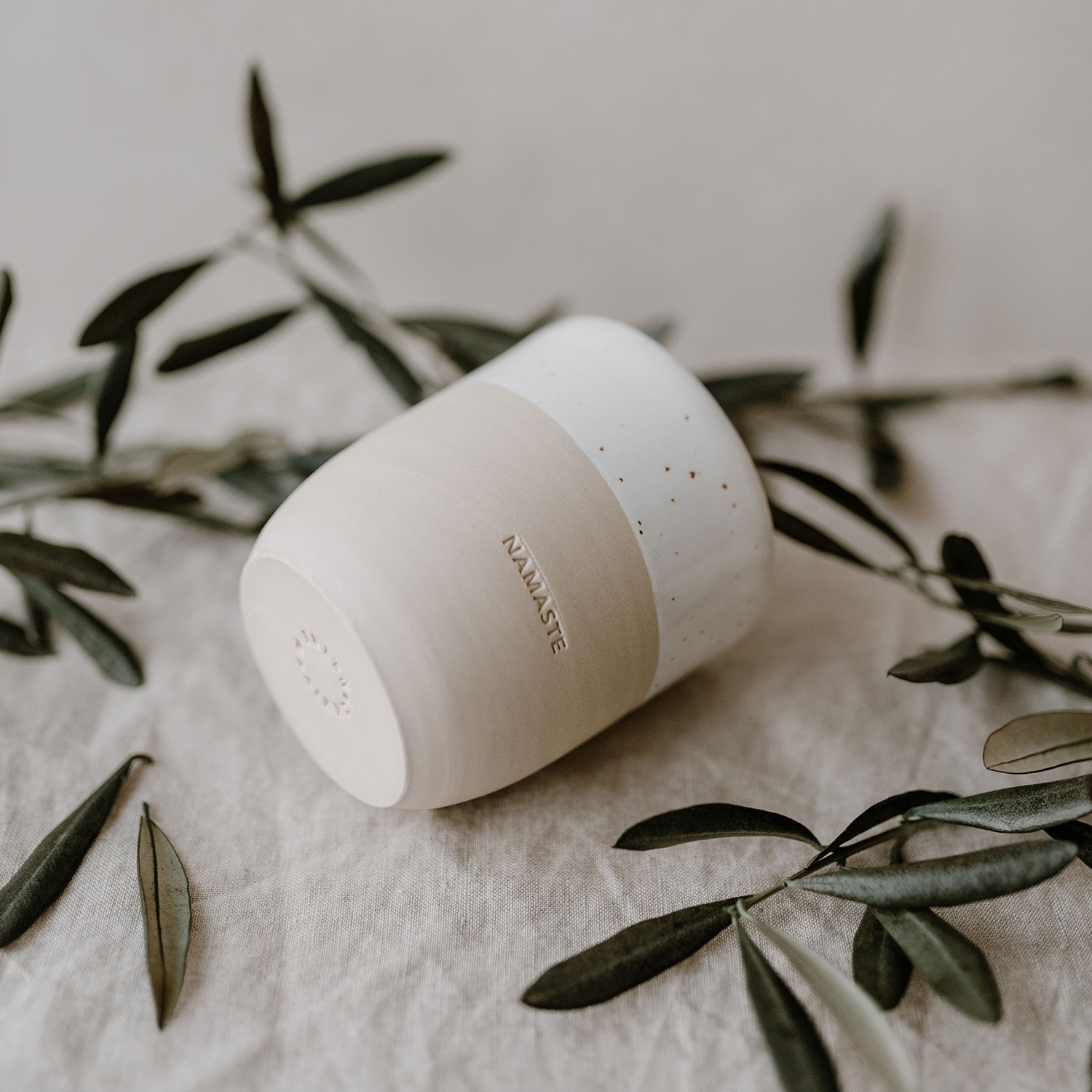 Malá keramička z Portugalska vyrábí tyto nádherné hrnečky s láskyplnou péčí, a proto jsou skvělým každodenním společníkem pro všechny, kteří milují krásu minimalistického designu. Díky těmto hrnečkům bijí srdce rychleji všem, kteří milují individualitu Clay & Glaze, protože každý kousek má svůj vlastní nádech a osobitý šarm. Jelikož jsou všechny hrnečky vyráběny ručně, vypalovány, raženy, broušeny, glazovány a znovu vypalovány, existují rozdíly v hloubce tisku, ve výšce i rovnosti. Minimalistický design a přirozené barevné odstíny završuje krásná slepá ražba „NAMASTE“. Jsme do nich zamilovaní, plní čisté radosti a nemůžeme se dočkat, až je uvidíme ve vašich rukách! Kameninový hrneček Namaste je dokonalým dárkem nejen pro milovníky jógy.
