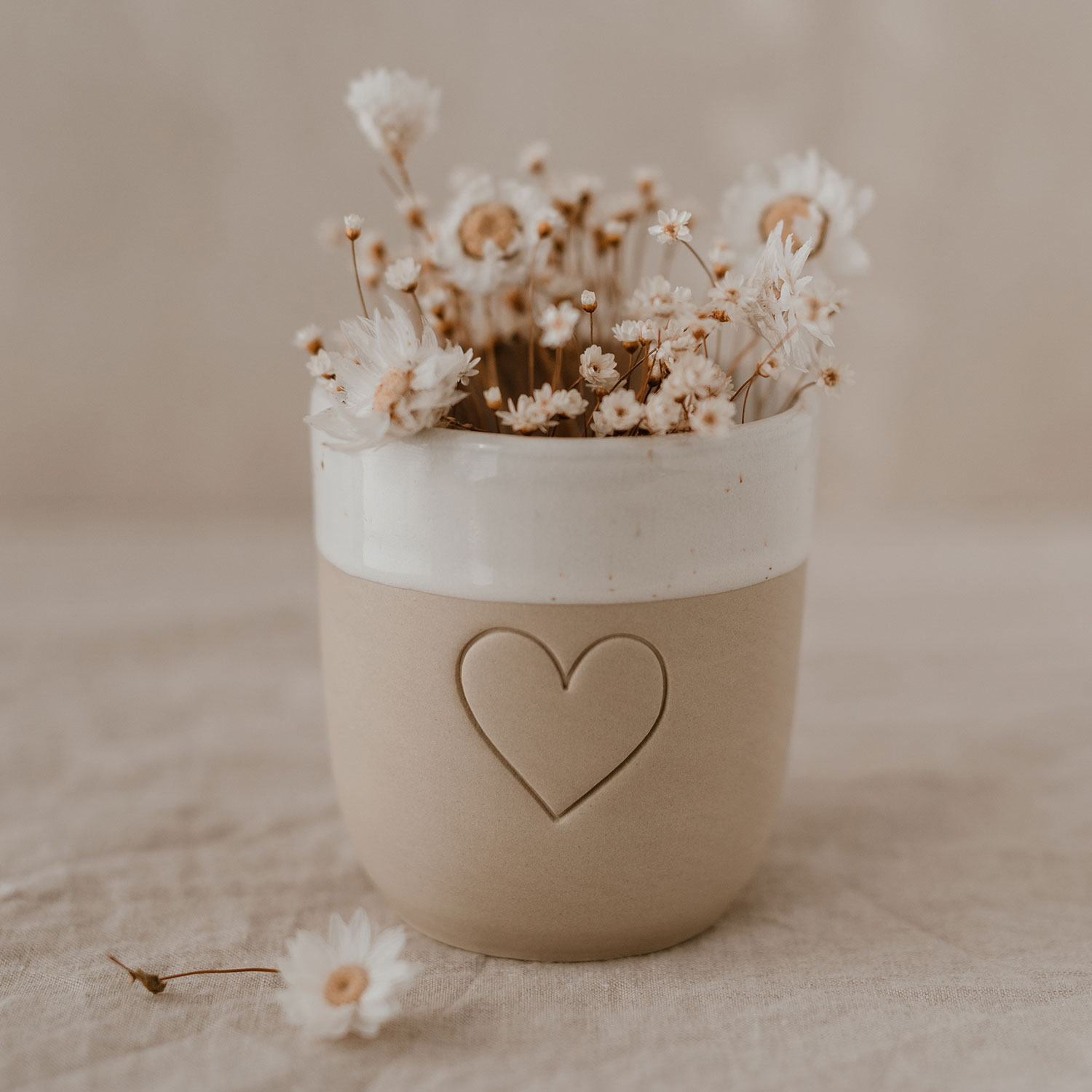 Do kolekce hrnečků z hlediska tvaru, tónu, glazování a designu, bylo vloženo hodně srdce a duše. Malá keramička z Portugalska vyrábí tyto nádherné hrnečky s láskyplnou péčí, a proto jsou skvělým každodenním společníkem pro všechny, kteří milují krásu minimalistického designu. Díky těmto hrnečkům bijí srdce rychleji všem, kteří milují individualitu Clay & Glaze, protože každý kousek má svůj vlastní nádech a osobitý šarm. Jelikož jsou všechny hrnečky vyráběny ručně, vypalovány, raženy, broušeny, glazovány a znovu vypalovány, existují rozdíly v hloubce tisku, ve výšce i rovnosti. Minimalistický design a přirozené barevné odstíny završuje krásná velká slepá ražba srdíčka. Jsme do nich zamilovaní, plní čisté radosti a nemůžeme se dočkat, až je uvidíme ve vašich rukách! Hrneček velké srdce je dokonalým dárkem pro všechny, kteří mají srdce na tom správném místě. LIMITOVANÁ EDICE.